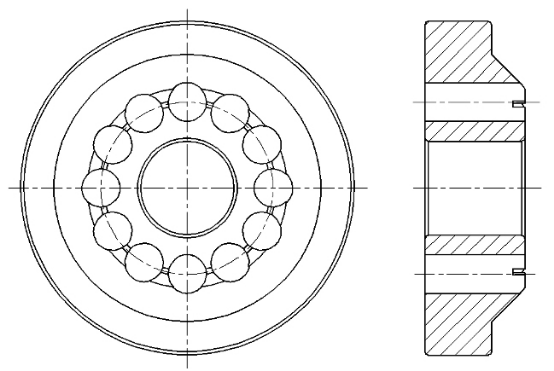 軸度。因此,銑削出的兜孔實(shí)際旋轉(zhuǎn)中心徑與理論中心徑偏差較大(即兜孔同軸度誤差較大),保持架兜孔等分散差較大,導(dǎo)致軸承在運(yùn)轉(zhuǎn)過(guò)程中噪聲比較大,必須對(duì)夾具進(jìn)行優(yōu)化改進(jìn)。